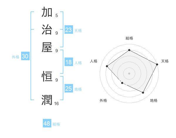 加治屋 恒潤さんの天格は23画の5点
