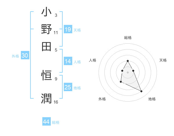 小野田 恒潤さんを姓名の画数から五運を鑑定