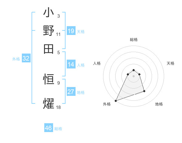 小野田 恒燿さんの外格は32画の5点!