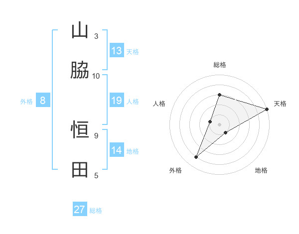 山脇 恒田さんの総格は27画の3点!