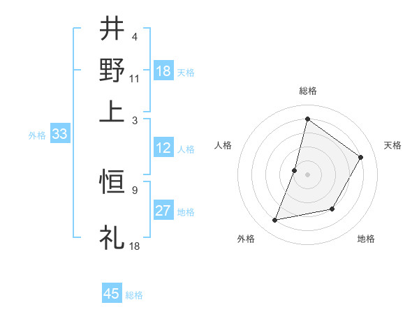 井野上 恒礼さんを姓名の画数から五運を鑑定