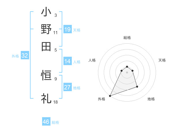 小野田 恒礼さんを姓名の画数から五運を鑑定