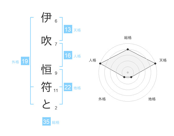 伊吹 恒符とさんを姓名の画数から五運を鑑定