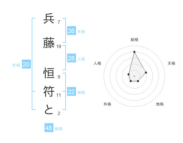兵藤 恒符とさんを姓名の画数から五運を鑑定