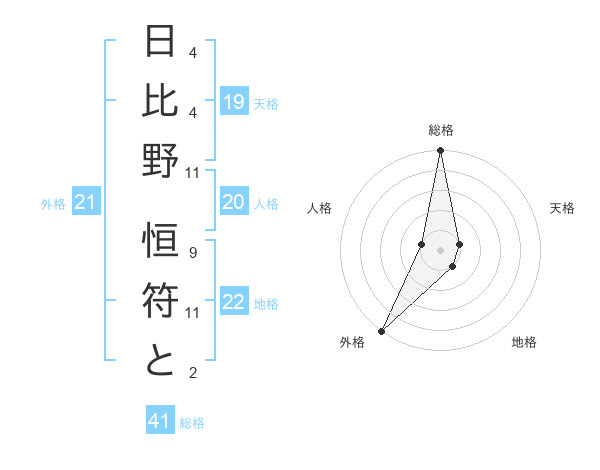 日比野 恒符とさんを姓名の画数から五運を鑑定