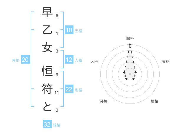 早乙女 恒符とさんを姓名の画数から五運を鑑定