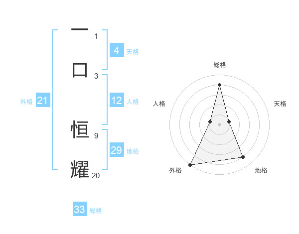一口 恒耀さんの外格は21画の5点!