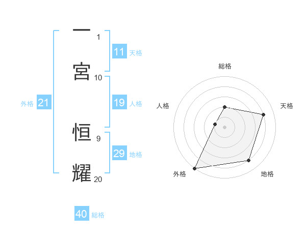 一宮 恒耀さんの外格は21画の5点!