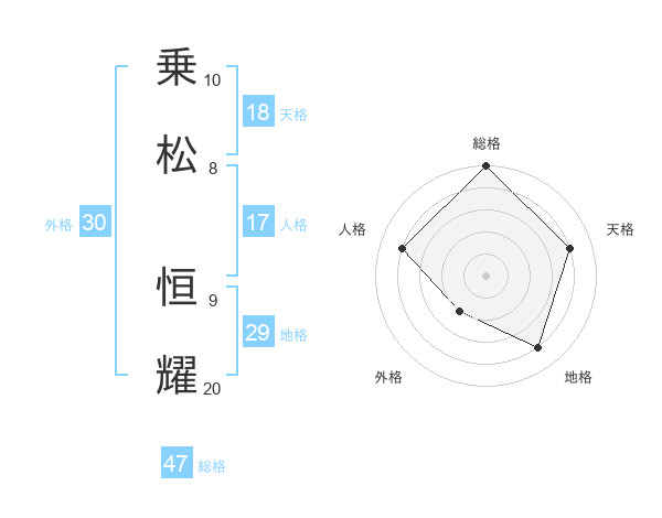 乗松 恒耀さんを姓名の画数から五運を鑑定