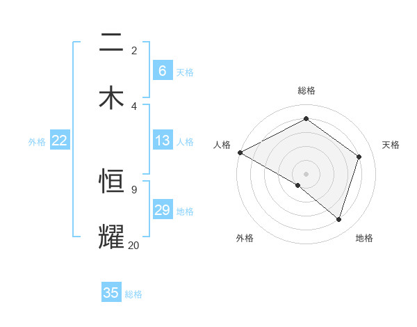 二木 恒耀さんの総格は35画の4点!