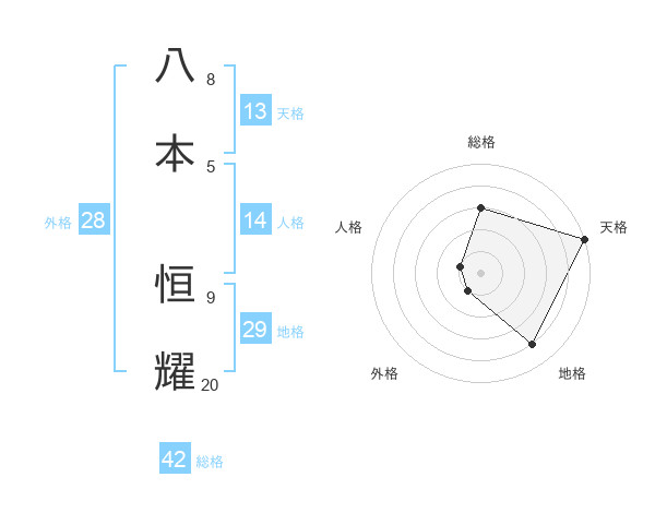 八本 恒耀さんの天格は13画の5点!