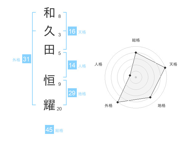 和久田 恒耀さんを姓名の画数から五運を鑑定