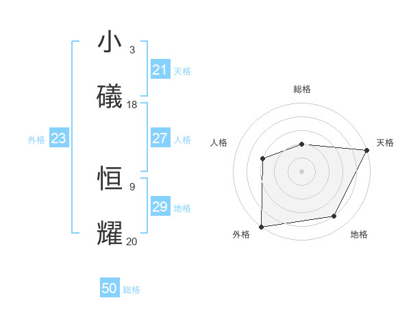 小礒 恒耀さんを姓名の画数から五運を鑑定