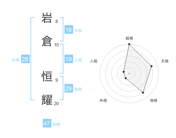 岩倉 恒耀さんを姓名の画数から五運を鑑定