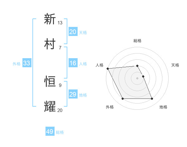 新村 恒耀さんの総格は49画の2点!