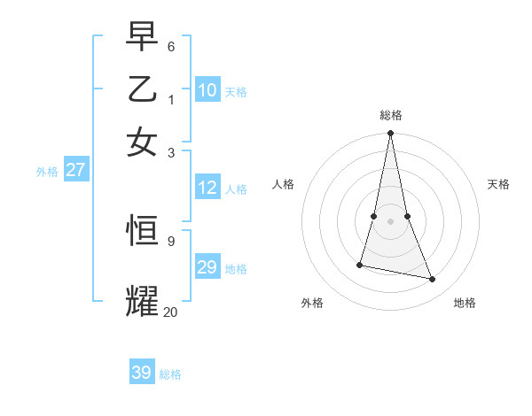 早乙女 恒耀さんの総格は39画の5点!