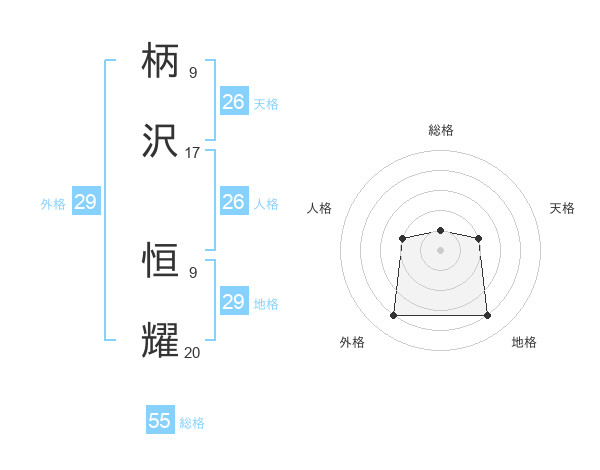 柄沢 恒耀さんの外格は29画の4点!