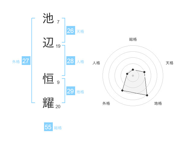 池辺 恒耀さんを姓名の画数から五運を鑑定