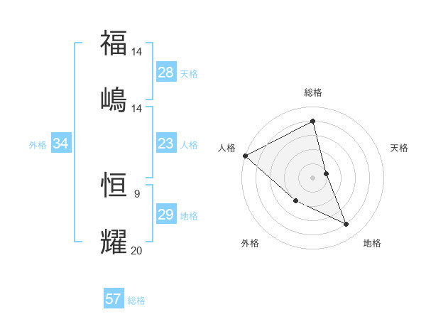 福嶋 恒耀さんを姓名の画数から五運を鑑定