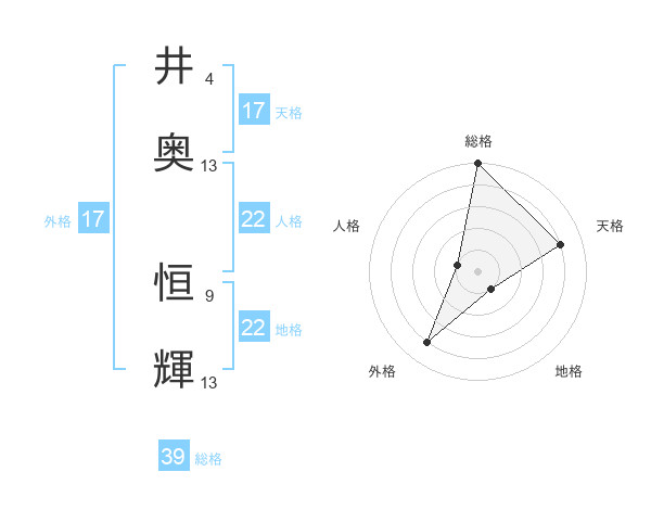 井奥 恒輝さんの地格は22画の1点!