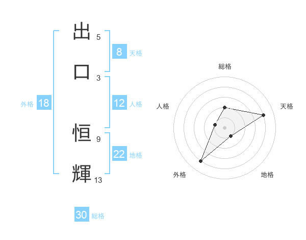 出口 恒輝さんの天格は8画の4点!