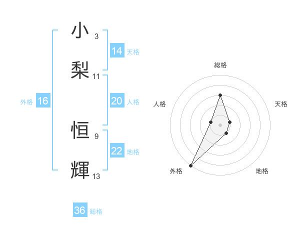 小梨 恒輝さんの外格は16画の5点!