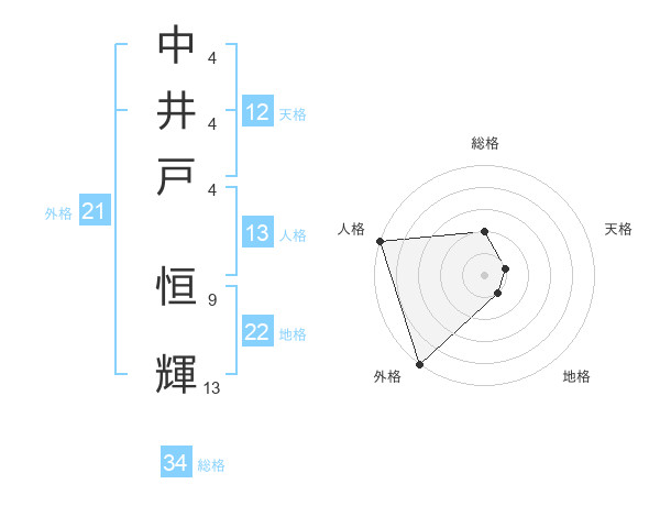 中井戸 恒輝さんを姓名の画数から五運を鑑定