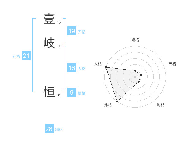 壹岐 恒さんの外格は21画の5点!