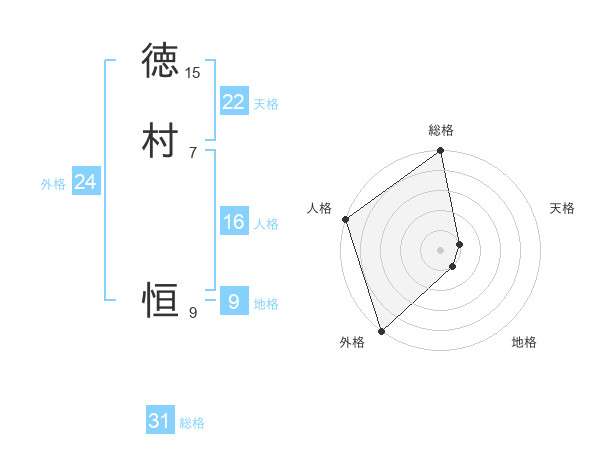 徳村 恒さんの総格は31画の5点!