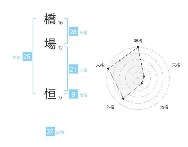 橋場 恒さんの総格は37画の5点!