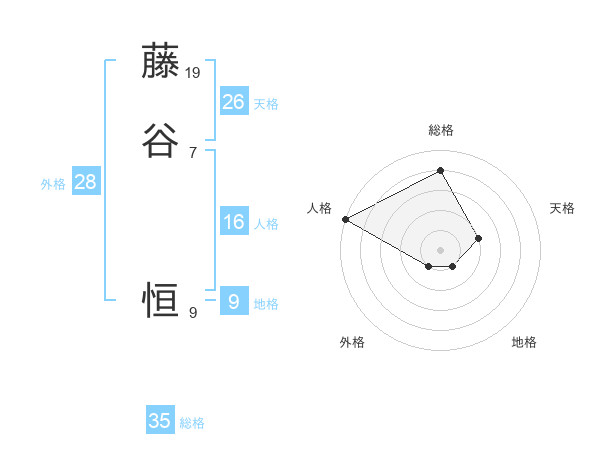 藤谷 恒さんの総格は35画の4点!
