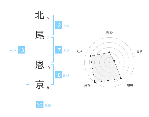北尾 恩京さんの外格は13画の5点!