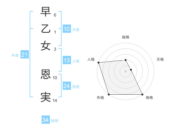 早乙女 恩実さんを姓名の画数から五運を鑑定