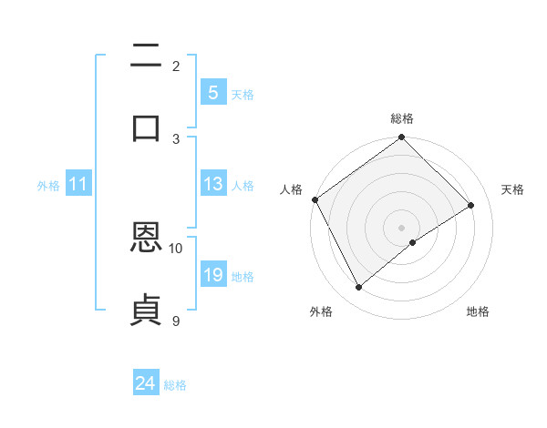 二口 恩貞さんを姓名の画数から五運を鑑定