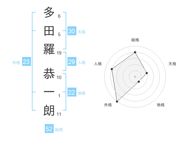 多田羅 恭一朗さんを姓名の画数から五運を鑑定