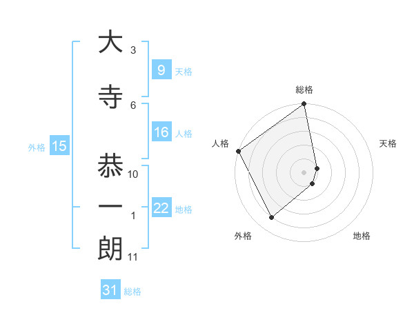 大寺 恭一朗さんを姓名の画数から五運を鑑定