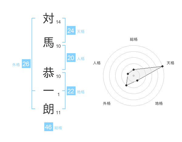 対馬 恭一朗さんの天格は24画の5点!