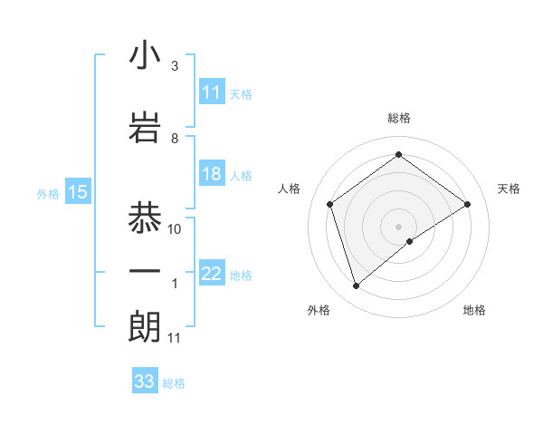 小岩 恭一朗さんの総格は33画の4点!