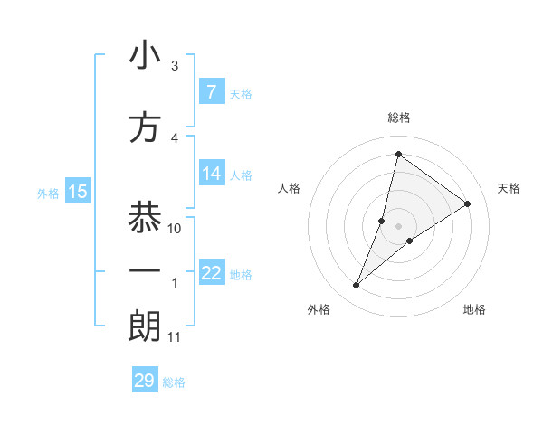 小方 恭一朗さんを姓名の画数から五運を鑑定