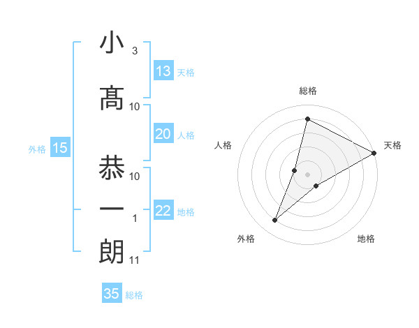 小髙 恭一朗さんの総格は35画の4点!