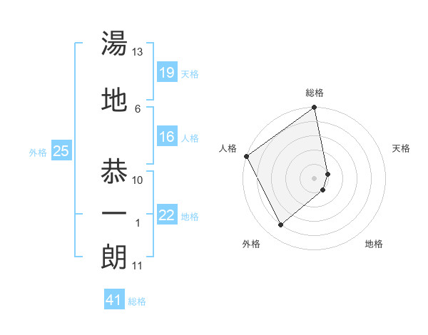 湯地 恭一朗さんの総格は41画の5点!