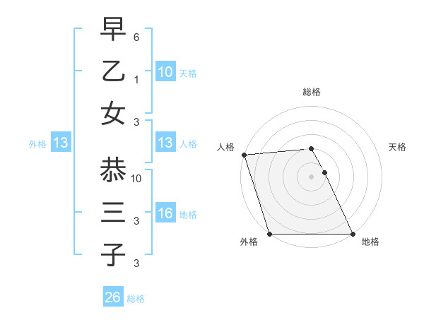 早乙女 恭三子さんを姓名の画数から五運を鑑定