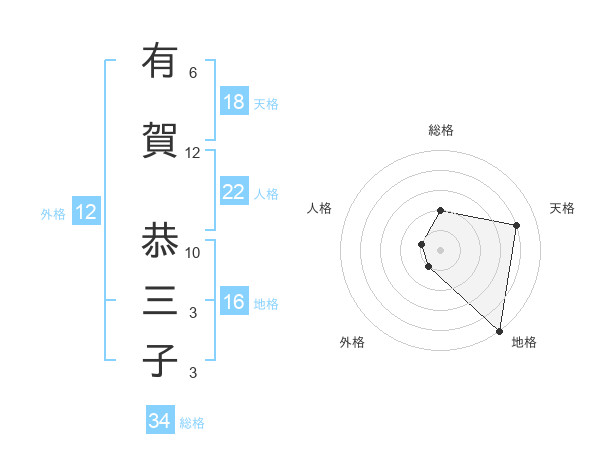 有賀 恭三子さんを姓名の画数から五運を鑑定