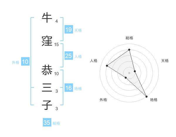 牛窪 恭三子さんの総格は35画の4点!
