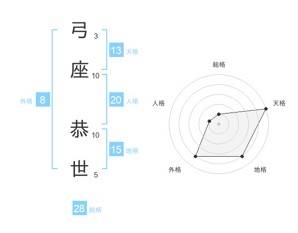 弓座 恭世さんの天格は13画の5点!