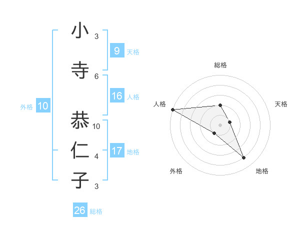 小寺 恭仁子さんの総格は26画の2点!