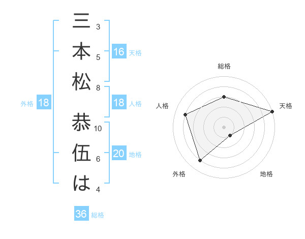 三本松 恭伍はさんを姓名の画数から五運を鑑定