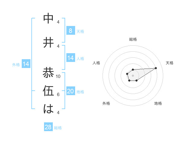 中井 恭伍はさんを姓名の画数から五運を鑑定
