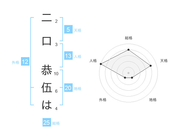 二口 恭伍はさんの総格は25画の4点!