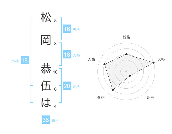 松岡 恭伍はさんを姓名の画数から五運を鑑定